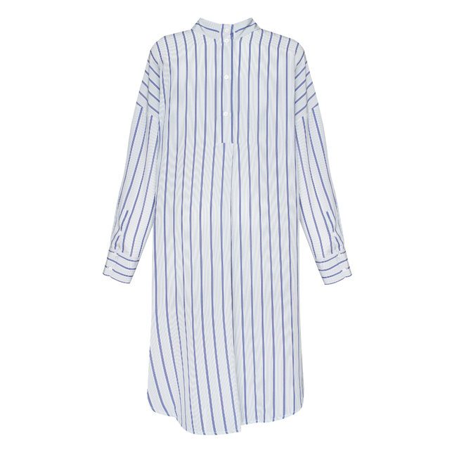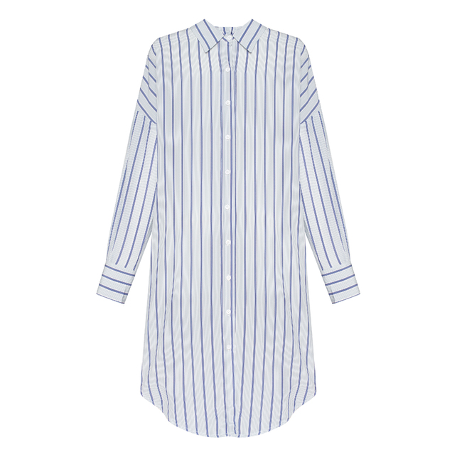 Незвичайна сукня у вигляді подовженої сорочки з відкладним коміром та довгими рукавами від бренду K&A стане вдалим вибором для всіх, хто цінує комфорт та елегантність. Приємний колір та вертикальна смужка підкреслить жіночність, а розрізи у лінії стегна надають володарці сукні грайливості. Довершує картину ряд гудзиків від горловини до подолу. У такому виробі ніколи не буде жарко – він виконаний з натурального крепдешину. Плаття не сковує рухів та приховує недоліки фігури. Виріб відмінно поєднується з взуттям на низькому каблуці, черевиками або стильними кросівками. Якщо вам хочеться відчути комфорт, але при цьому відчути себе елегантною – плаття впорається зі своїм завданням на всі 100%!