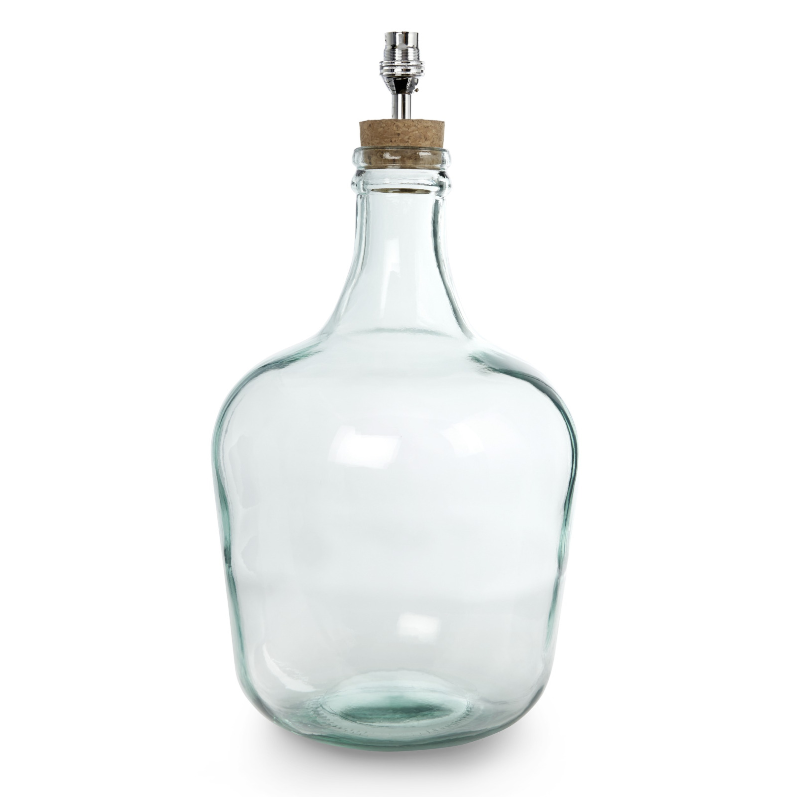 Красива і стильна база для настільної лампи, виконана у формі пляшки зі скла світлого золено-блакитного відтінку.