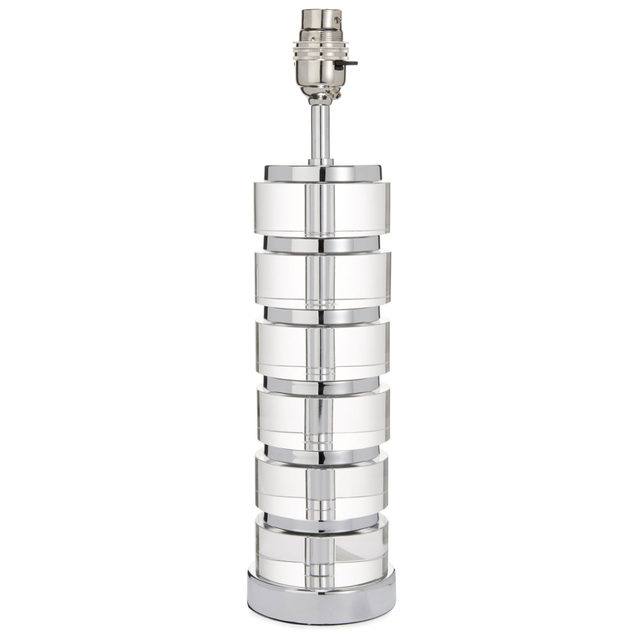 База для настільної лампи, зроблена з металу і скла, немов зібрана з металевих і скляних широких дисків.