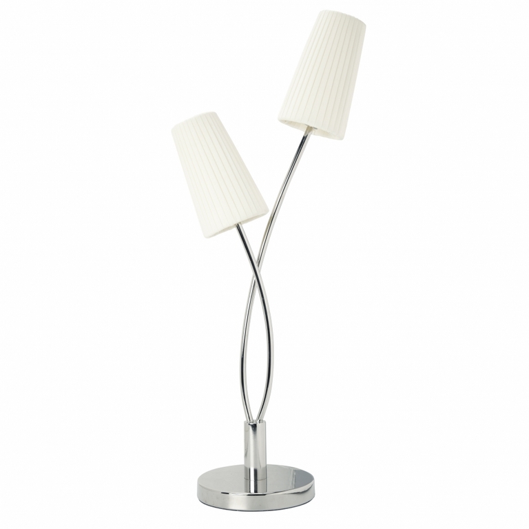 Лампа на 2 лампочки з викривленими ніжками і білими абажурами. Лампа відмінно впишеться в інтер'єр у стилі "Hi-tech".