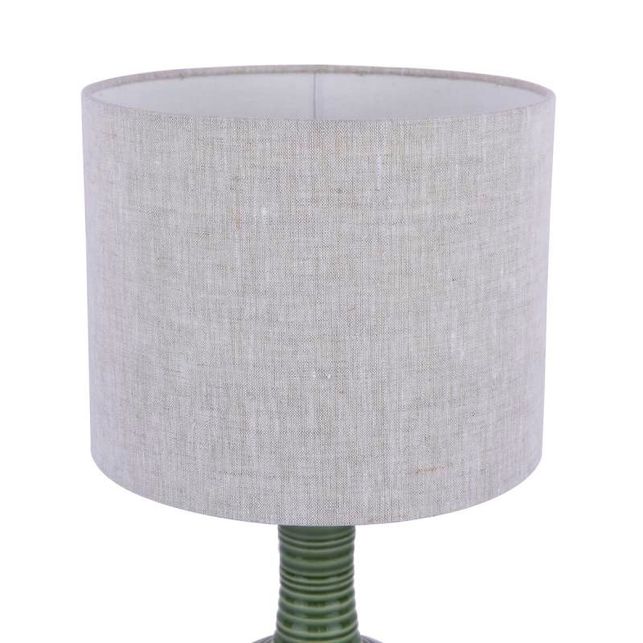Настільна лампа Padley від Laura Ashley має рифлену керамічну основу в вигляді колби в глянсовій прозорій глазурі темно-зеленого кольору. Ця ефектна настільна лампа в поєднанні з абажуром з тканини вівсяного кольору створює тепле сяйво світла, що дозволяє створити ідеальну атмосферу у вашому просторі.Чудово підійде в спальню, вітальню н навіть на кухню. Лампочка не входить в комплект.