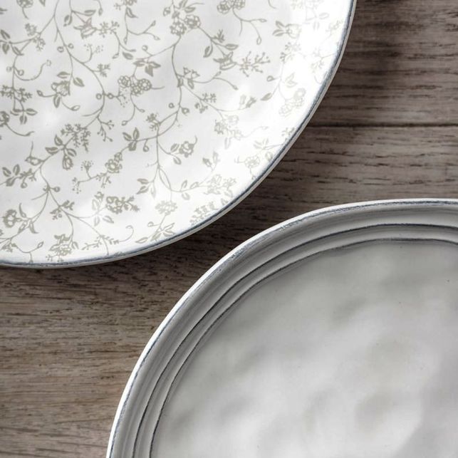 Незвичайний набір тарілок із колекції Artisan. Ця унікальна серія посуду в сільському стилі виготовляється з кераміки, тому її неправильні форми не повторюються, що робить її особливою та ексклюзивною. Квітковий друк сіро-зеленого кольору на білому тлі і білий зі світло-сірою смужкою по краю забарвлення, виглядають витончено і ніжно доповнюючи один одного. Набір складається з чотирьох тарілок однакового розміру, дві білі та дві з квітковим принтом, упакованого у гарну подарункову коробку. З таким посудом ваш сніданок або обід будуть завжди приємними і стильними. Створіть свій особливий затишок та стиль, доповнюючи колекцію для кухні в наших магазинах, яка найкраще підходить до вашого інтер'єру.