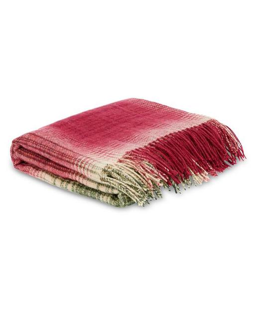 Теплий плед насиченого бордового кольору з ефектом омбре. Цей плед має трохи асиметричну зелену клітинку доповнену світлими молочними відтінками і бахромлю з боків. Для декорування кімнати Ви можете підібрати до пледа подушки в зеленому або бордовому кольорі. Це зробить Ваш інтер'єр по справжньому англійським.
