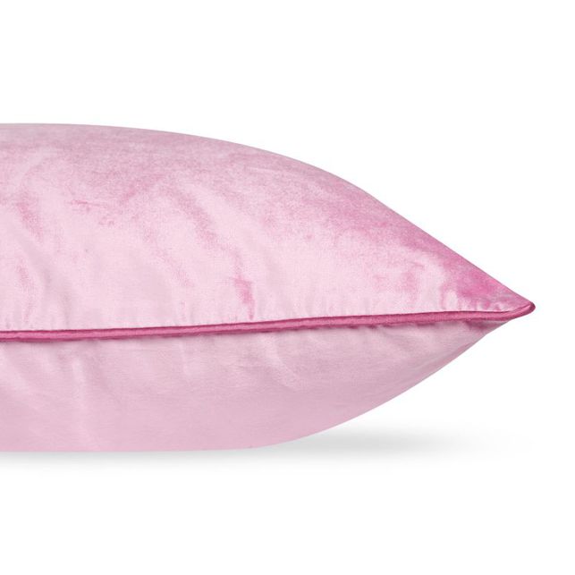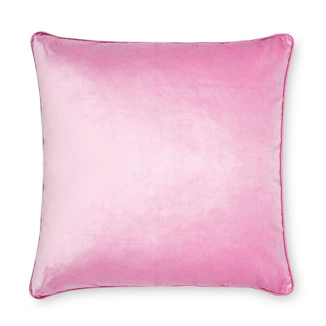 М'яка, плюшева декоративна подушка квадратної форми яскраво-рожевого кольору.