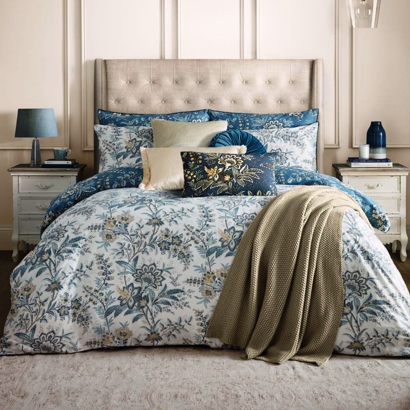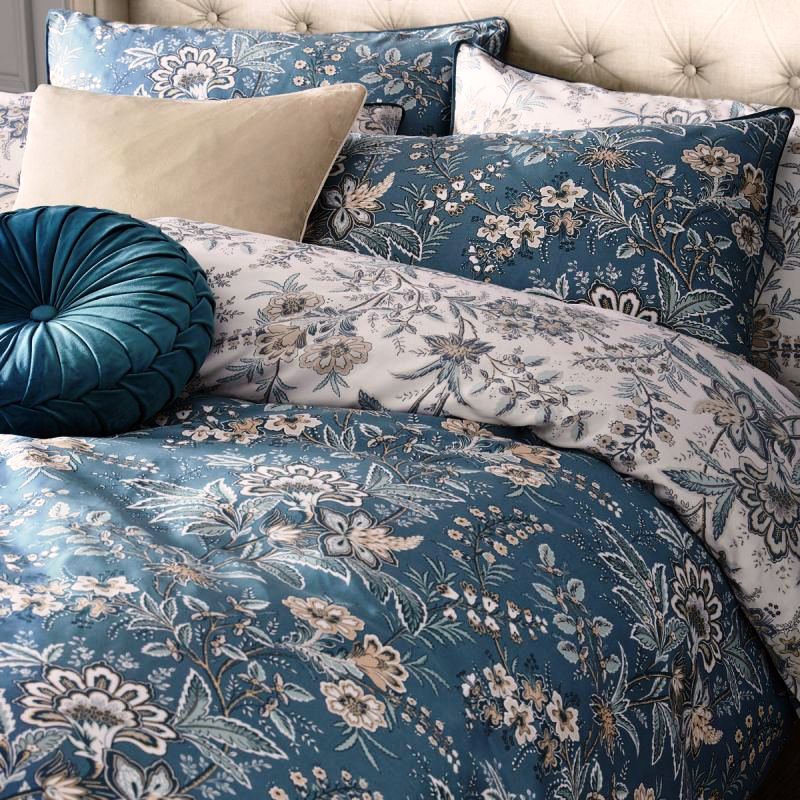 Натхненний зразком старовинного текстилю з архіву Лори Ешлі, принт Marlbrook містить вигнуті стебла, на яких розквітають екзотичні квіти. Цей ефектний дизайн додає відчуття вишуканості та позачасової краси будь-якому простору завдяки своєму декоративному стилю. Смілива, але витончена колірна палітра морських відтінків, кремових та охри прикрашає цей сатиновий комплект із 100% бавовни щільністю 200TC.