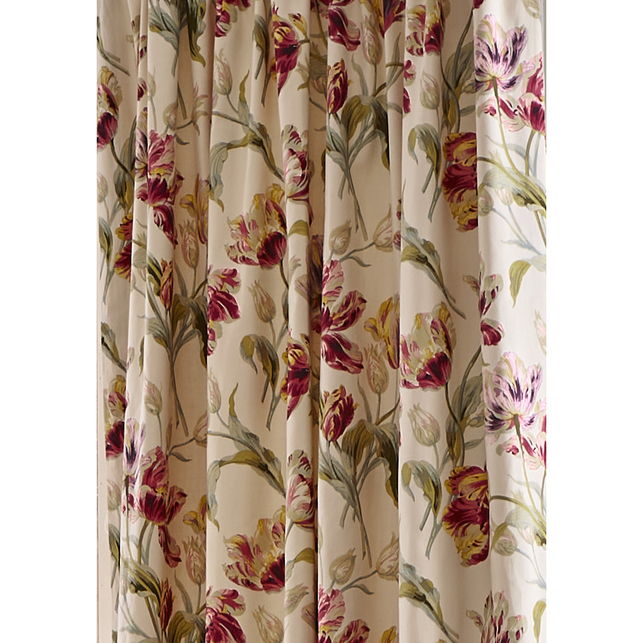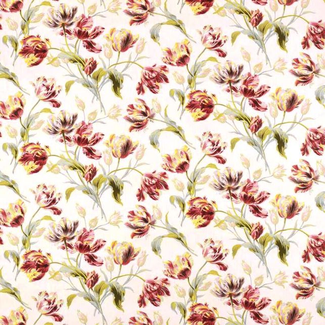 Красива тканину з бавовни і льону кремового кольору, щедро прикрашена великим принтом квітів тюльпана насиченого червоного кольору. З цієї тканини виходять неймовірно красиві штори які внесуть в інтер'єр домашній затишок, красу і стиль. Серія принтів GOSFORD давно відома шанувальникам наших колекцій, вони повторюються на тканинах, декоративних подушках і постільній білизні.